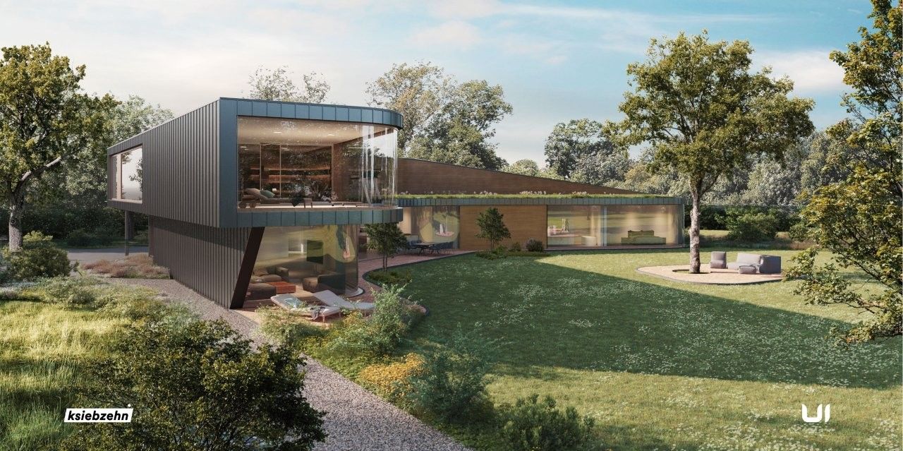 K17 Architekten BDA präsentieren den Entwurf für eine zeitgemäße Multiuse-Villa, die den Charakter des Bestands neu interpretiert. Da das ursprüngliche Gebäude aufgrund von Kontamination zurückgebaut werden musste, entsteht nun ein Neubau, der die Situation als architektonische Chance versteht: