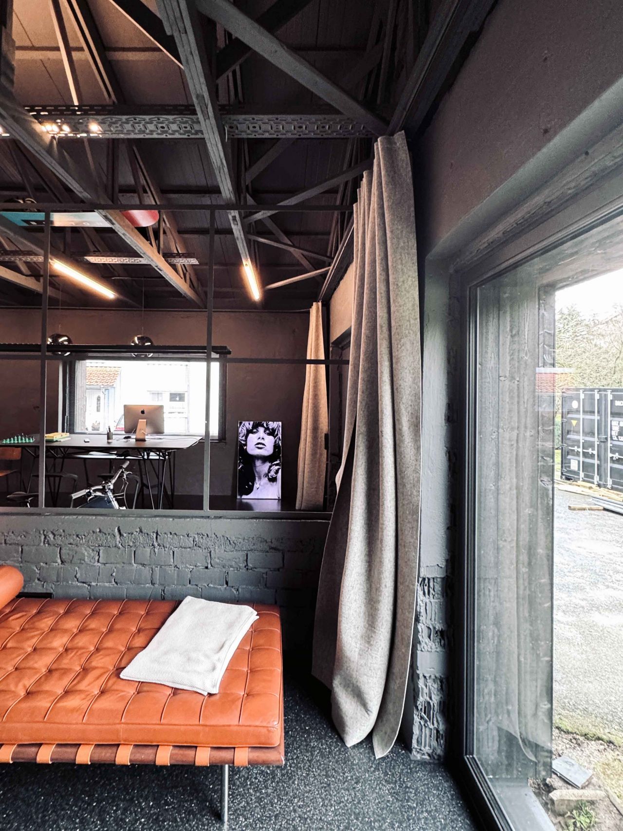 Bei der Renovierung wurde auch die Dachbinderkonstruktion freigelegt, um den einzigartigen Charme des Raumes zu betonen. Dieser Schritt verlieh dem Loft ein rustikales Flair und schuf gleichzeitig ein offenes Raumgefühl.