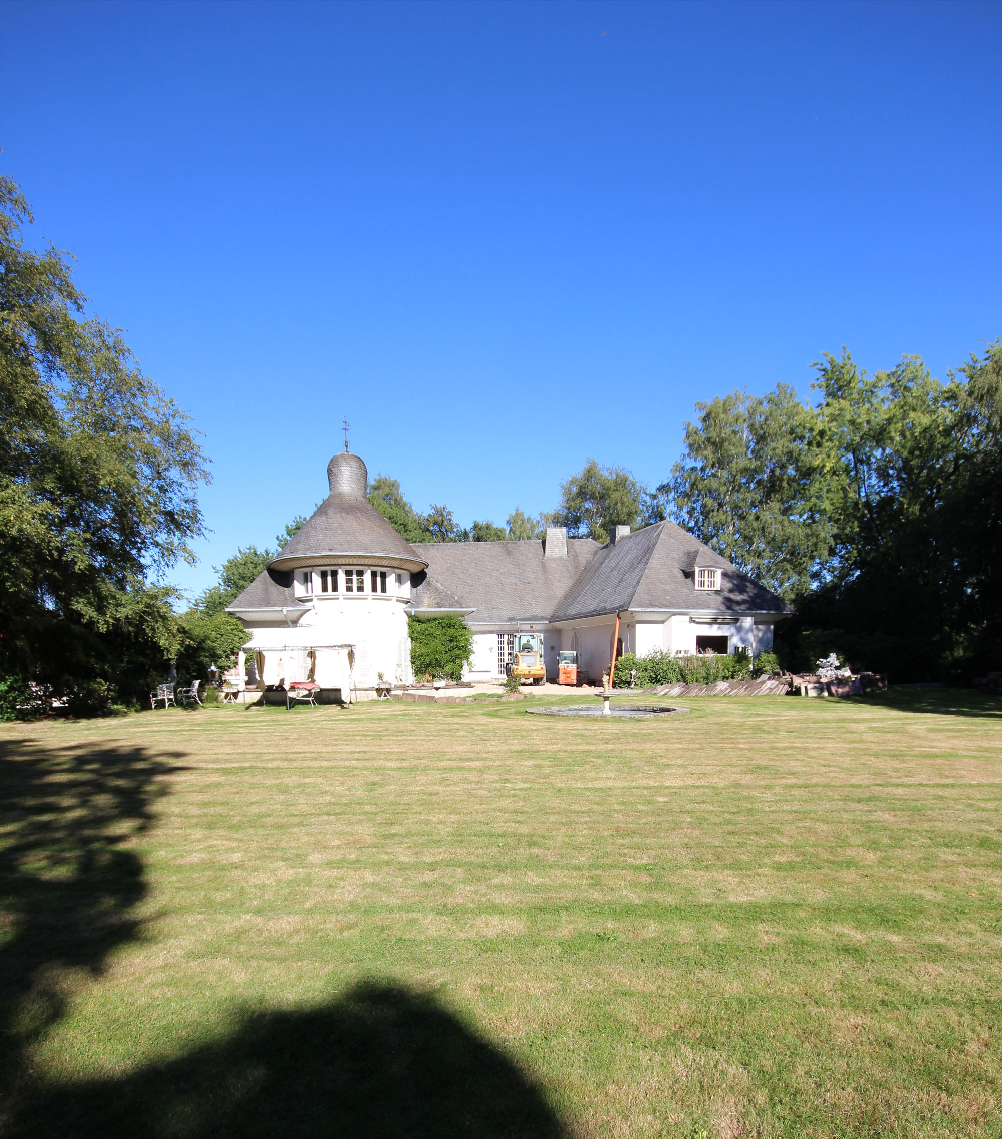 Besonderer Wert wurde auf die Verbindung zur großzügigen umliegenden Parkanlage gelegt. Blickachsen und räumliche Beziehungen zwischen Innen- und Außenbereichen wurden gezielt betont und neu inszeniert. Der Einbau großflächiger Fensterelemente schafft eine lichtdurchflutete Atmosphäre und ermöglicht einen fließenden Übergang zwischen Wohnraum und Natur.