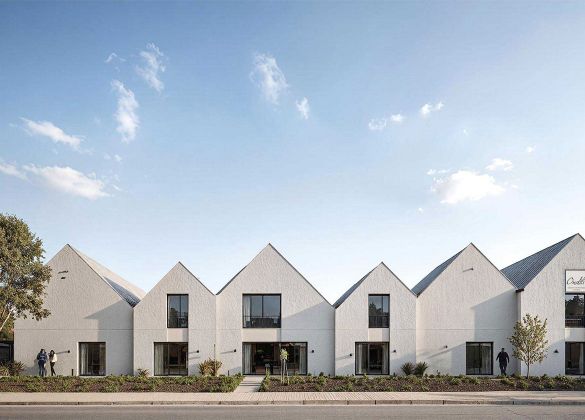 Dieses Projekt in zentraler Lage von Windhoek, Namibia, interpretiert die archetypische Giebelform neu und formt daraus ein klares, zeitgenössisches Ensemble. Die rhythmische Abfolge der Baukörper erzeugt eine prägnante Silhouette und vermitte…