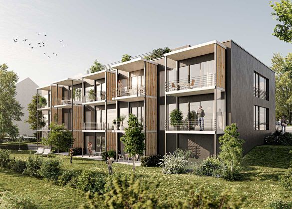 Auf dem Kellergeschoss eines kontaminierten Bungalows aus den 1970er-Jahren entstand ein Ersatzneubau in zeitgemäßer Holzbauweise. Der schadstoffbelastete Altbau wurde zurückgebaut und durch einen neuen Baukörper ersetzt, der das bestehende Ke…