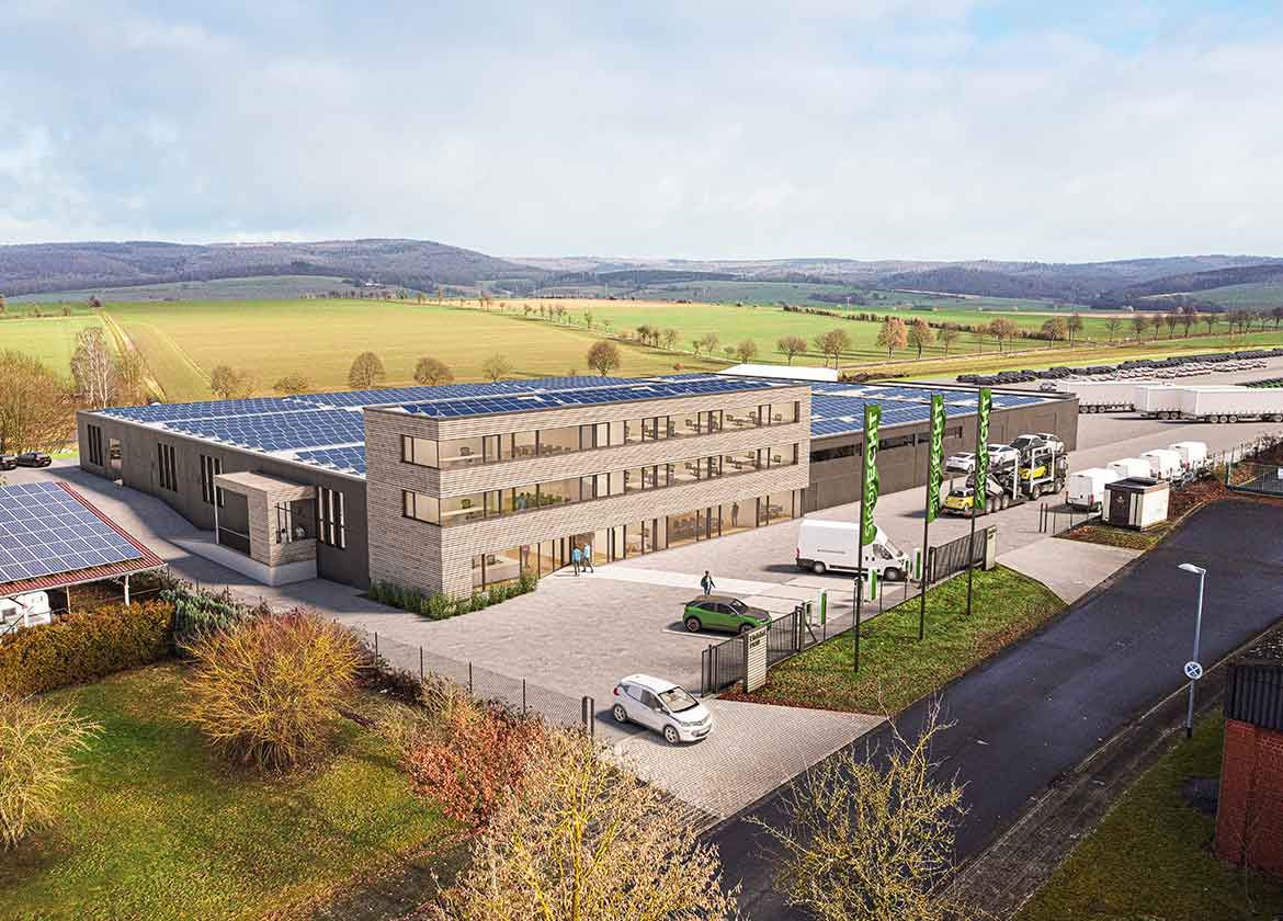 Das Areal erhält außerdem eine Waschanlage und eine große Anzahl E-Ladesäulen, die u.A. von der großflächigen Photovoltaikanalge gespeist werden können.