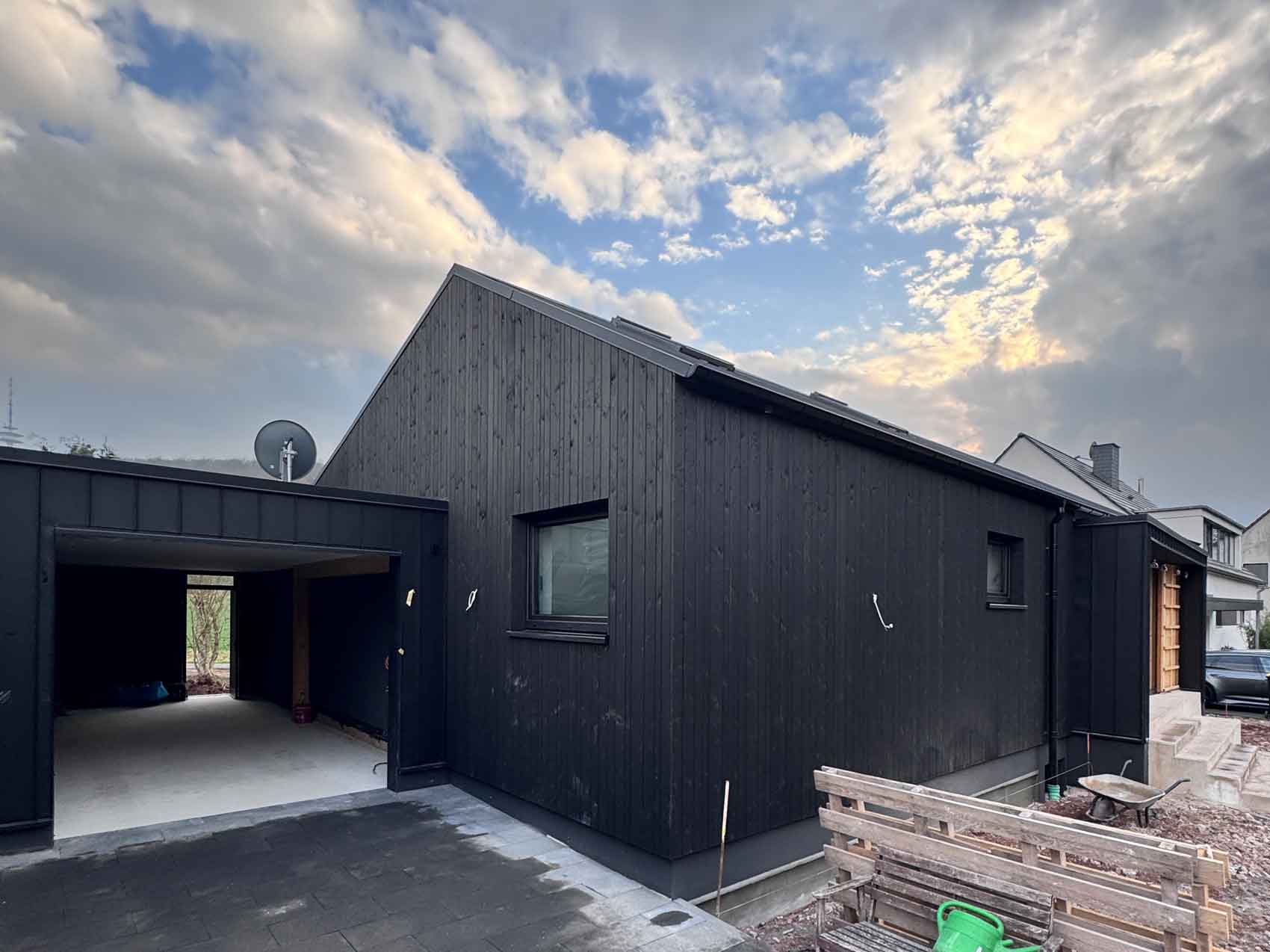 Auf dem Kellergeschoss eines kontaminierten Bungalows aus den 1970er-Jahren entstand ein nachhaltiger Ersatzneubau in zeitgemäßer Holzbauweise. Anstelle des schadstoffbelasteten Altbaus wurde ein neuer, ressourcenschonender Baukörper errichtet, der die bestehende Substanz sinnvoll integriert und damit einen sensiblen Umgang mit Fläche und Bestand zeigt.
