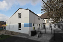 Februar 2014 ... Der Neubau einer Kindertagesstätte soll auf einem historischen Fundament errichtet werden. Dazu muss das vorhandene Gemeindehaus weichen. Mit einem hohen Vorfertigungsgrad soll das Gebäude in einer Holzrahmenkonstruktion entstehen. Die Räume sind offen und mit einem hohen Wert auf Bauökologie gestaltet.