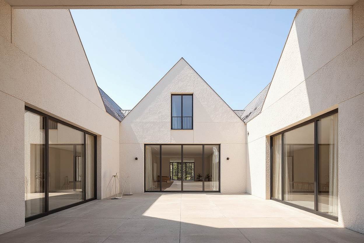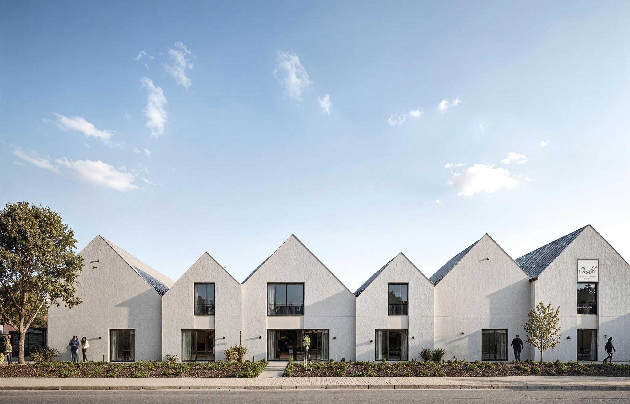Dieses Projekt in zentraler Lage von Windhoek, Namibia, interpretiert die archetypische Giebelform neu und formt daraus ein klares, zeitgenössisches Ensemble. Die rhythmische Abfolge der Baukörper erzeugt eine prägnante Silhouette und vermittelt zwischen städtischer Präsenz und menschlichem Maßstab.