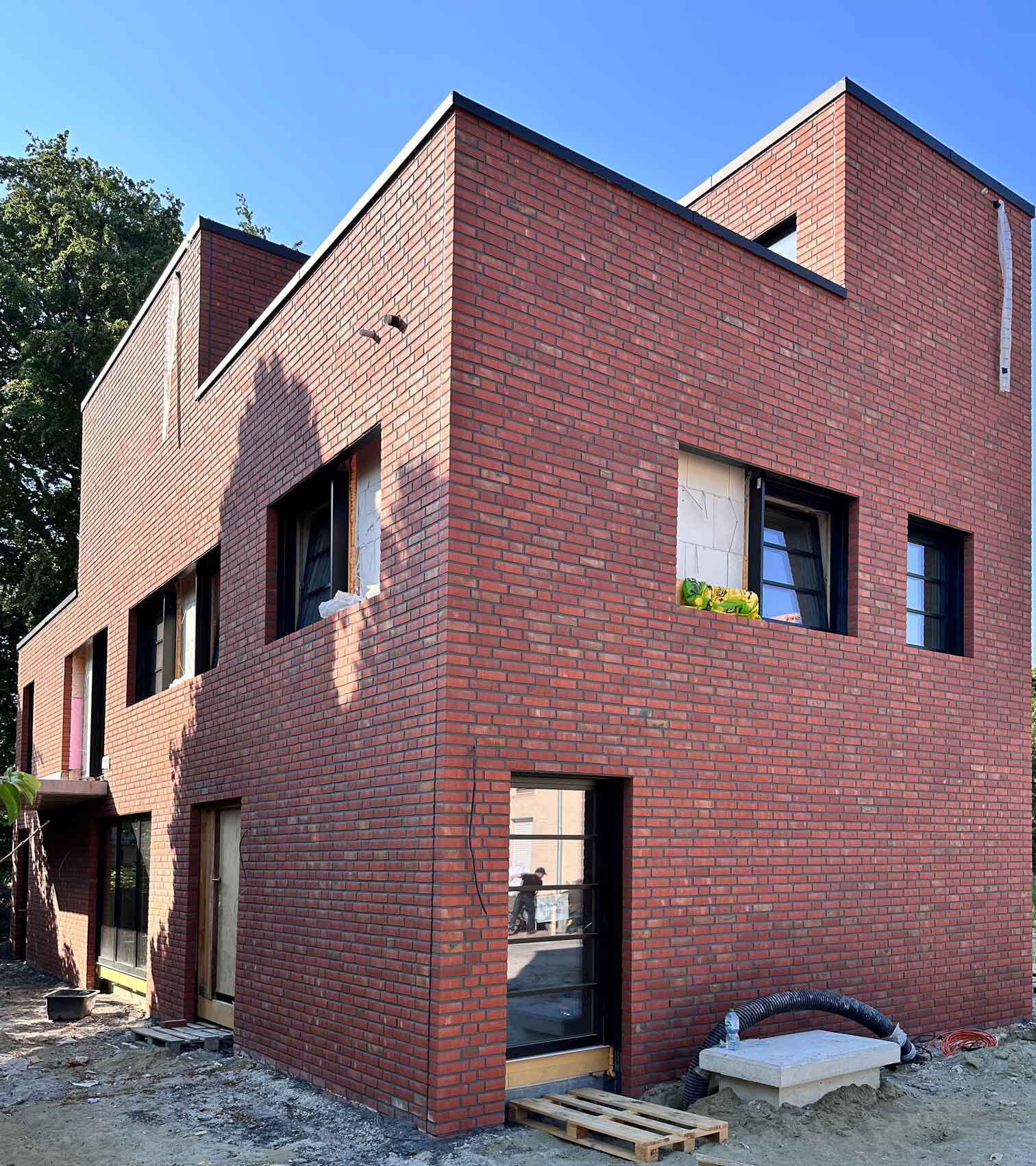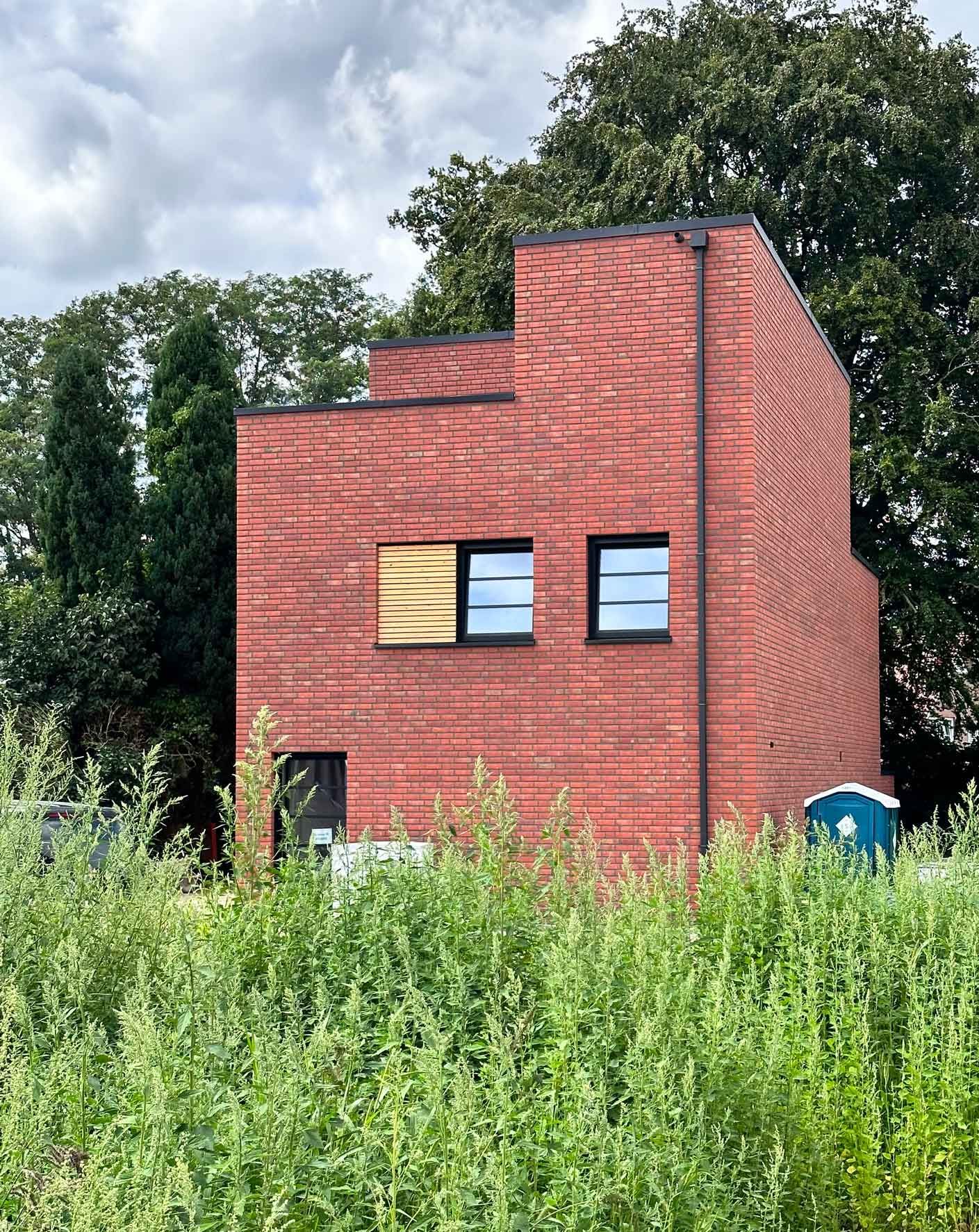 Im Stile Hamburger Stadthäuser sollte im Auftrag der Bauherren ein Entwurf für ein barrierefreies und Rollstuhlgerechtes Wohnhaus entstehen. Besondere Herausforderung war es, das barrierefreie Raumprogramm auf dem "Handtuchgrundstück" umzusetzen. Das Kettenhaus im industriellen Look erscheint in einer ortstypischen Klinkerfassade in Kombination mit Naturholzflächen. Das zweieinhalbgeschossige Wohnhaus erhält im Mansarddach eine Sonnenterrasse.